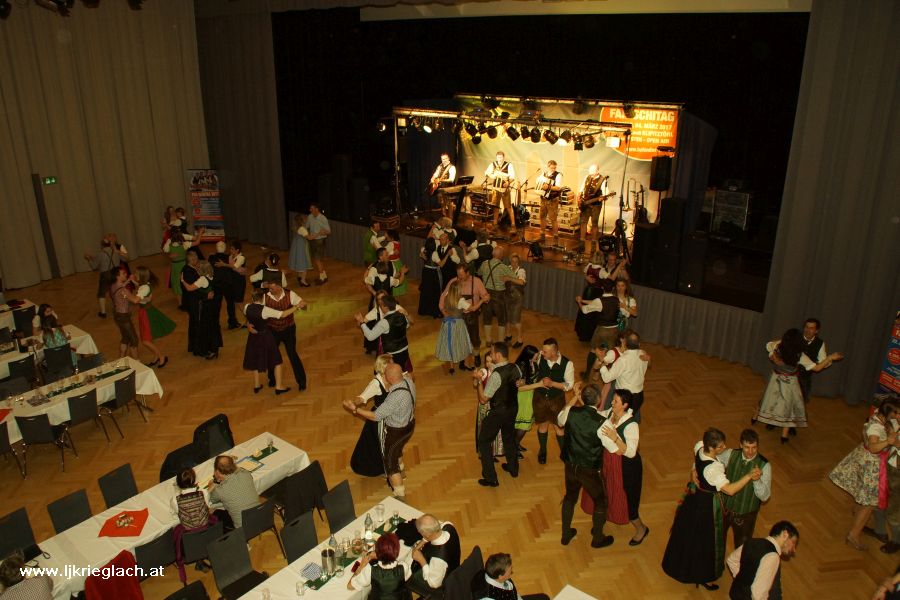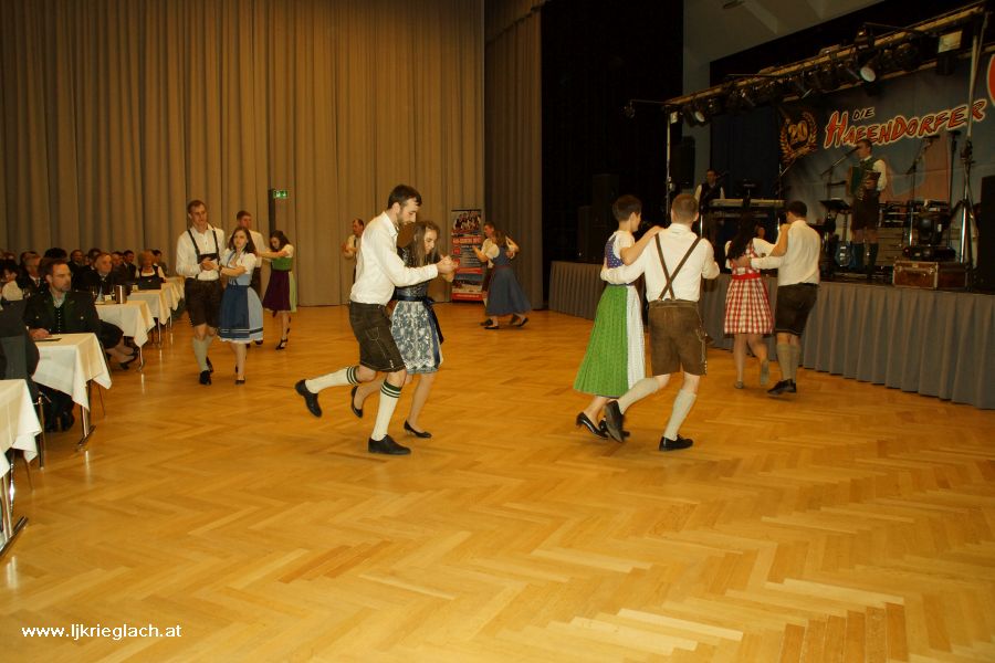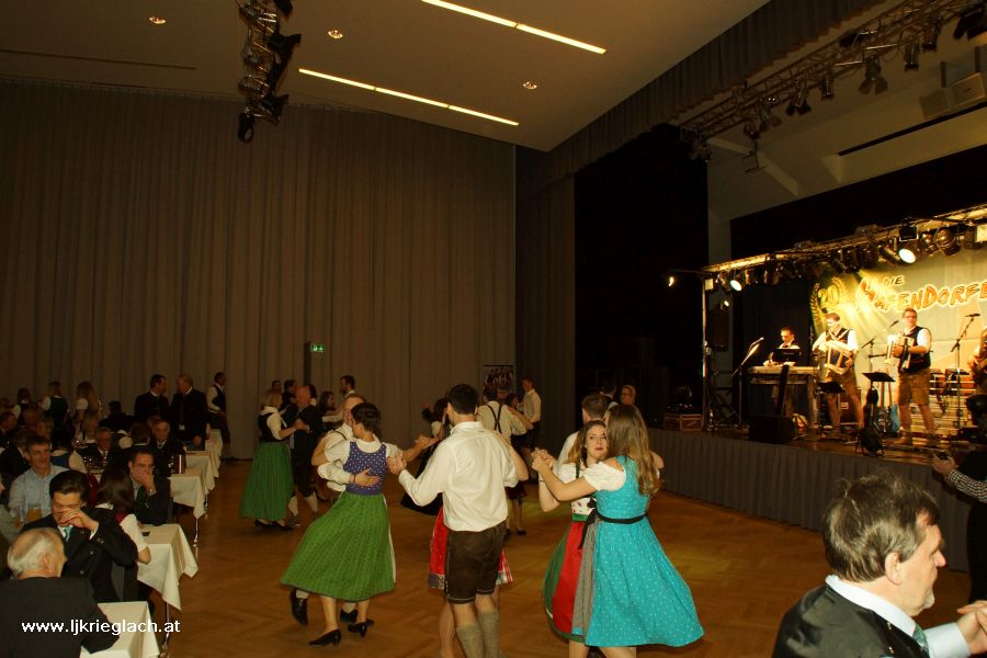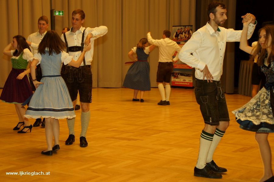 Junge und Junggebliebene trafen sich am 25. Februar 2017 im Veranstaltungszentrum Krieglach, um einen tollen Abend beim Krieglacher Bauernball zu verbringen. Wir von der Landjugend durften den Ball mit zwei Volkstänzen eröffnen, die Bernhard Sonnbichler mit uns einstudiert hat - danke dafür! Anschließend brachten Die Hafendorfer die Tanzfläche bis in die Morgenstunden ordentlich zum Glühen. Beim Schätzspiel galt es heuer zu erraten, wie groß insgesamt der Wadenumfang aller PolonaisetänzerInnen war. Bei 16 Tänzerinnen und Tänzern, also 32 Beinen, wurden am Ballabend gesamt 11.763 mm gemessen. Wer sein Glück weiters versuchen wollte, konnte sich Lose kaufen. Im Glückshafen gab es wieder zahlreiche tolle Preise zu ergattern. Weiters durften wir auch in der Disco und in der Bar davor für flüssige Verpflegung sorgen! ;-) Danke an alle Mitglieder für's fleißige Mithelfen und den zahlreichen BesucherInnen und Besuchern für einen gelungenen Ball!