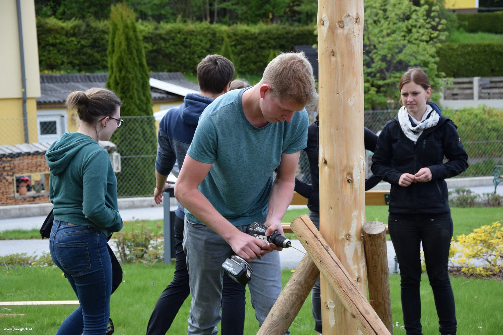 Passend zum Motto der Landjugend Steiermark "BIOTOPIA - fliegen flattern fördern" bauten wir als Landjugend Krieglach ein Insektenhotel in Form einer Biene und stellten diese im Garten der Kindergrippe auf. Doch damit nicht genug: Um sowohl für die Tiere als auch für die Kinder Nahrung anbauen zu können, haben wir noch zusätzlich ein Hochbeet errichtet, das die Kinder mit viel Freude und Liebe ins Detail bepflanzten. Es ist auch noch zusätzlich schon fast zur Tradition geworden, das wir dem Pflegeheim Krieglach einen Maibaum aufstellen und diesen dann auch feierlich umschneiden, wodurch das Projekt "Von Klein bis Groß - do is wos los!" ins Leben gerufen wurde. Es ist uns als Landjugend und als Krieglacher Verein sehr wichtig sowohl Brauchstumspflege als auch Allgemeinbildung und Zusammenhalt aller Menschen zu vermitteln, wofür wir dann auch von der Landjugend Steiermark mit einer Bronzemedaille ausgezeichnet wurden. An dieser Stelle nochmals ein großes Danke an alle fleißigen Helferinnen und Helfer, denn ohne euch, eure Ideen und euren Arbeitswillen könnte man so ein Projekt niemals umsetzen.